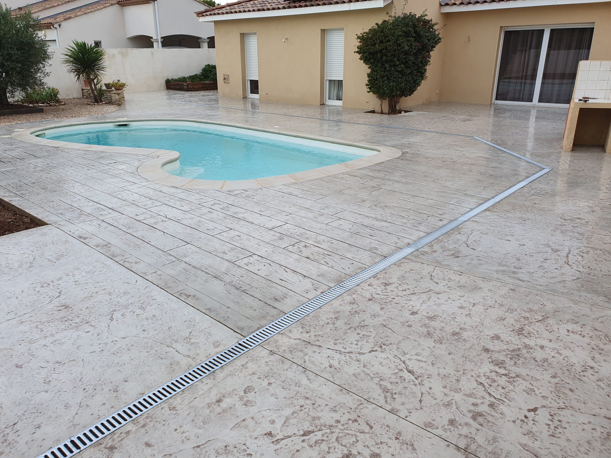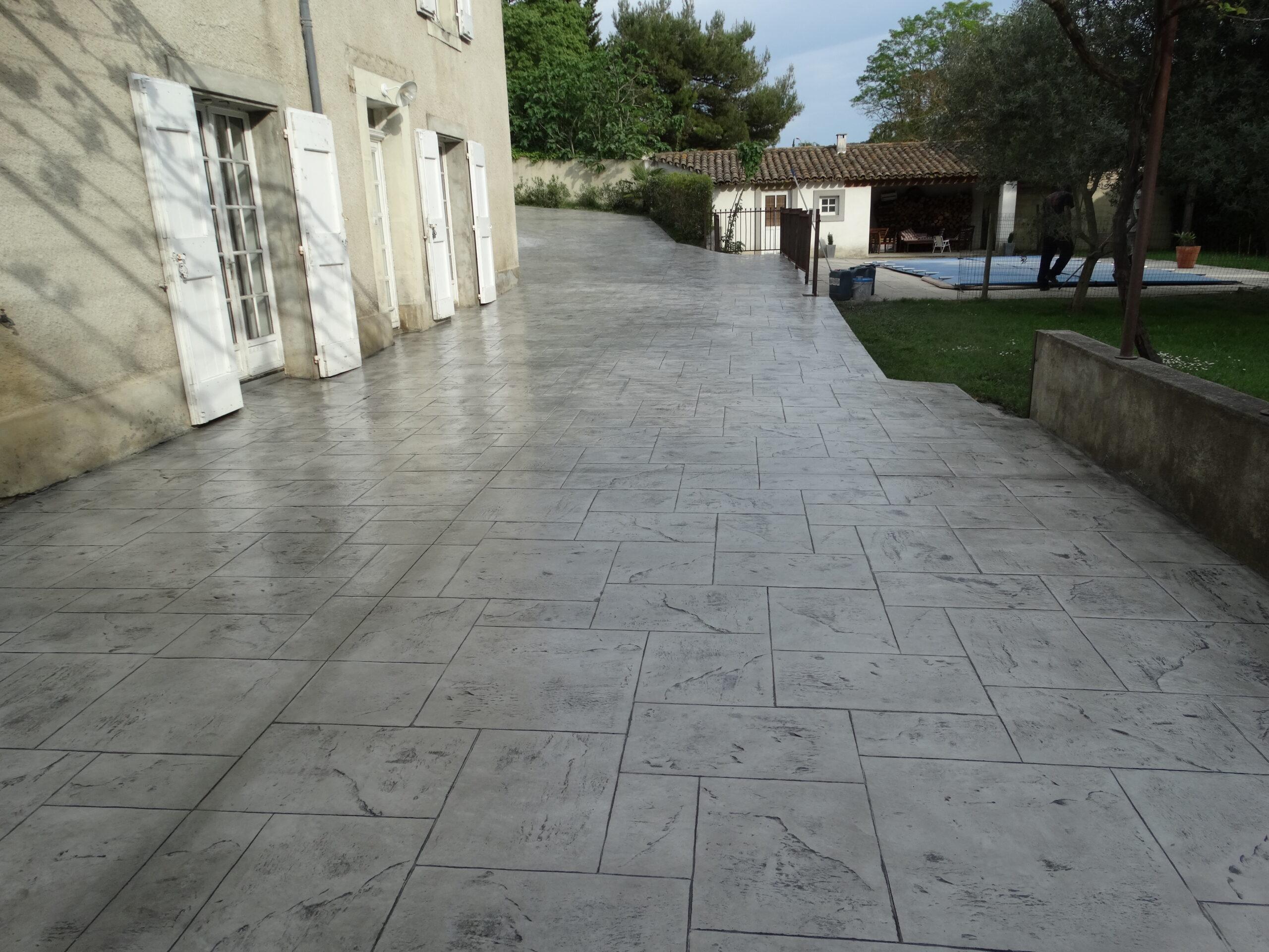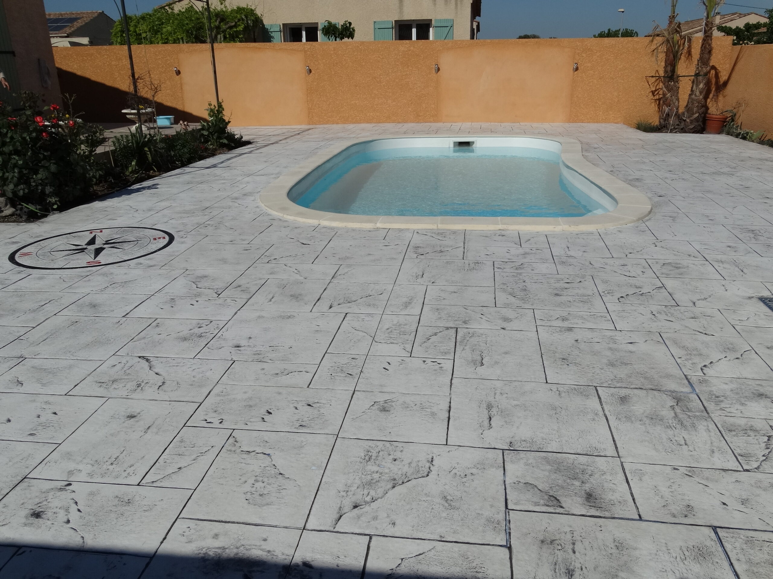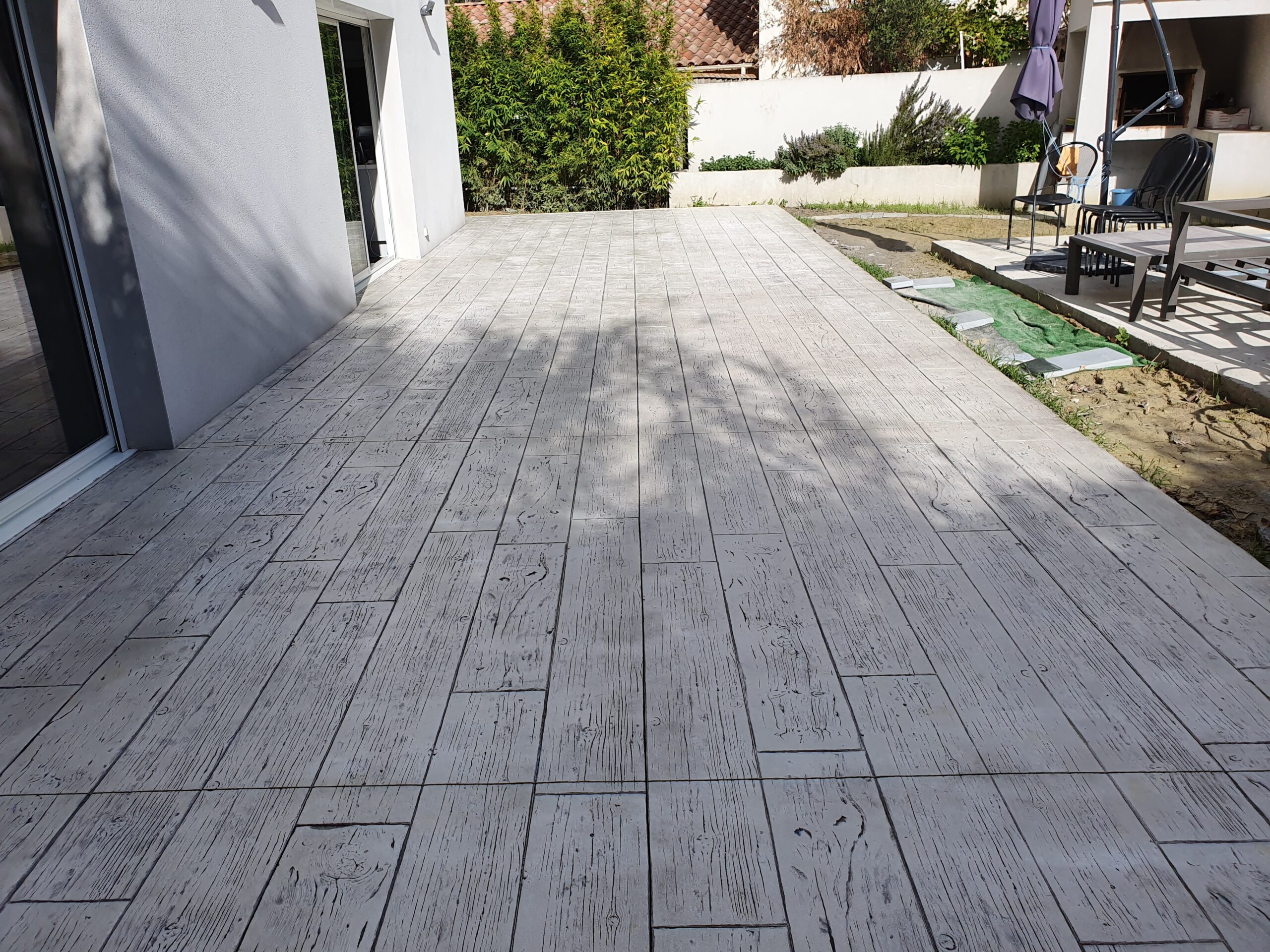 Grâce à son système d’imitation parfaite de travertin, carrelages, pierres et bois, etc. … le béton imprime ou marque aménage tous vos extérieurs de façon durable dans le temps.