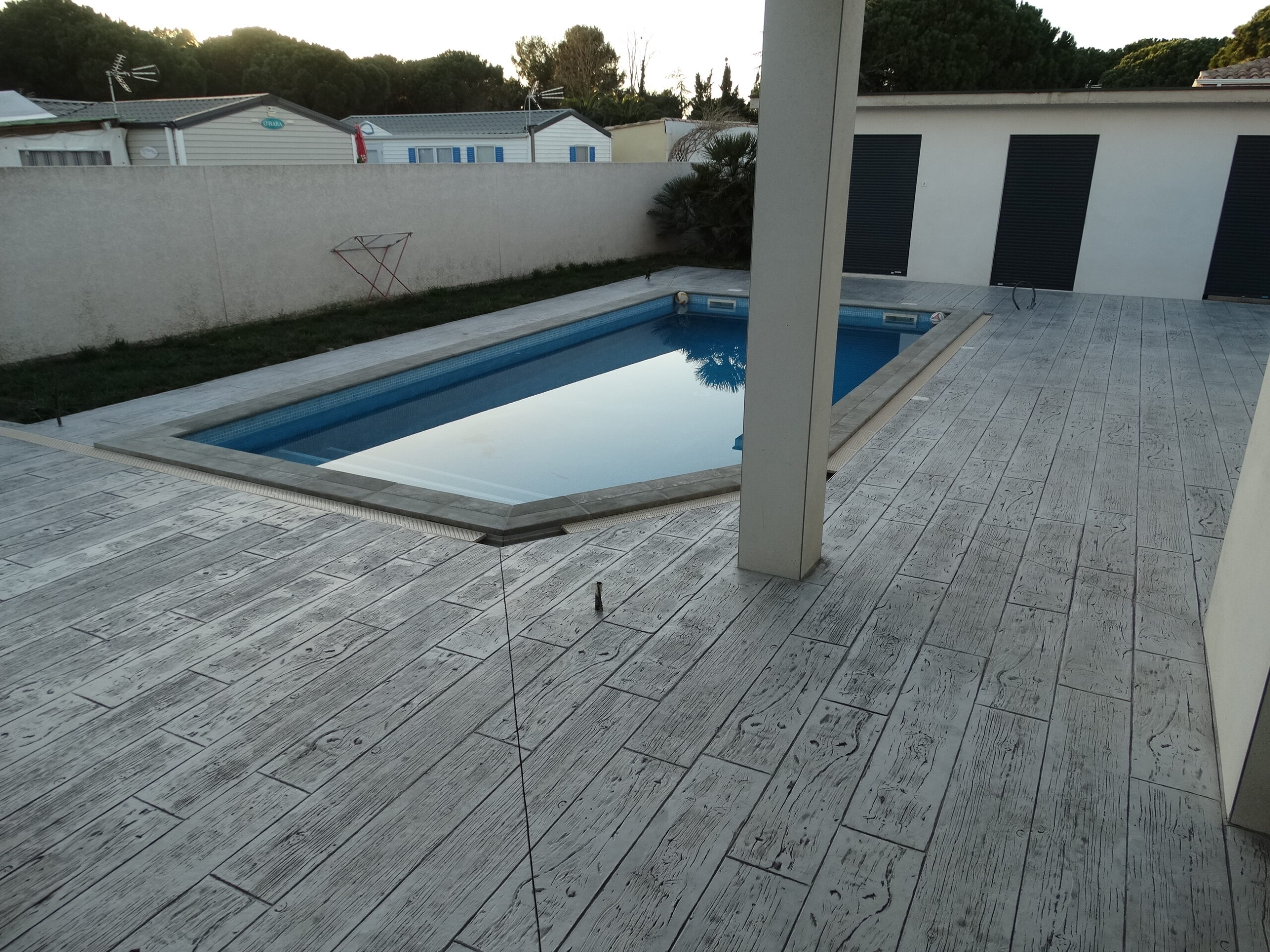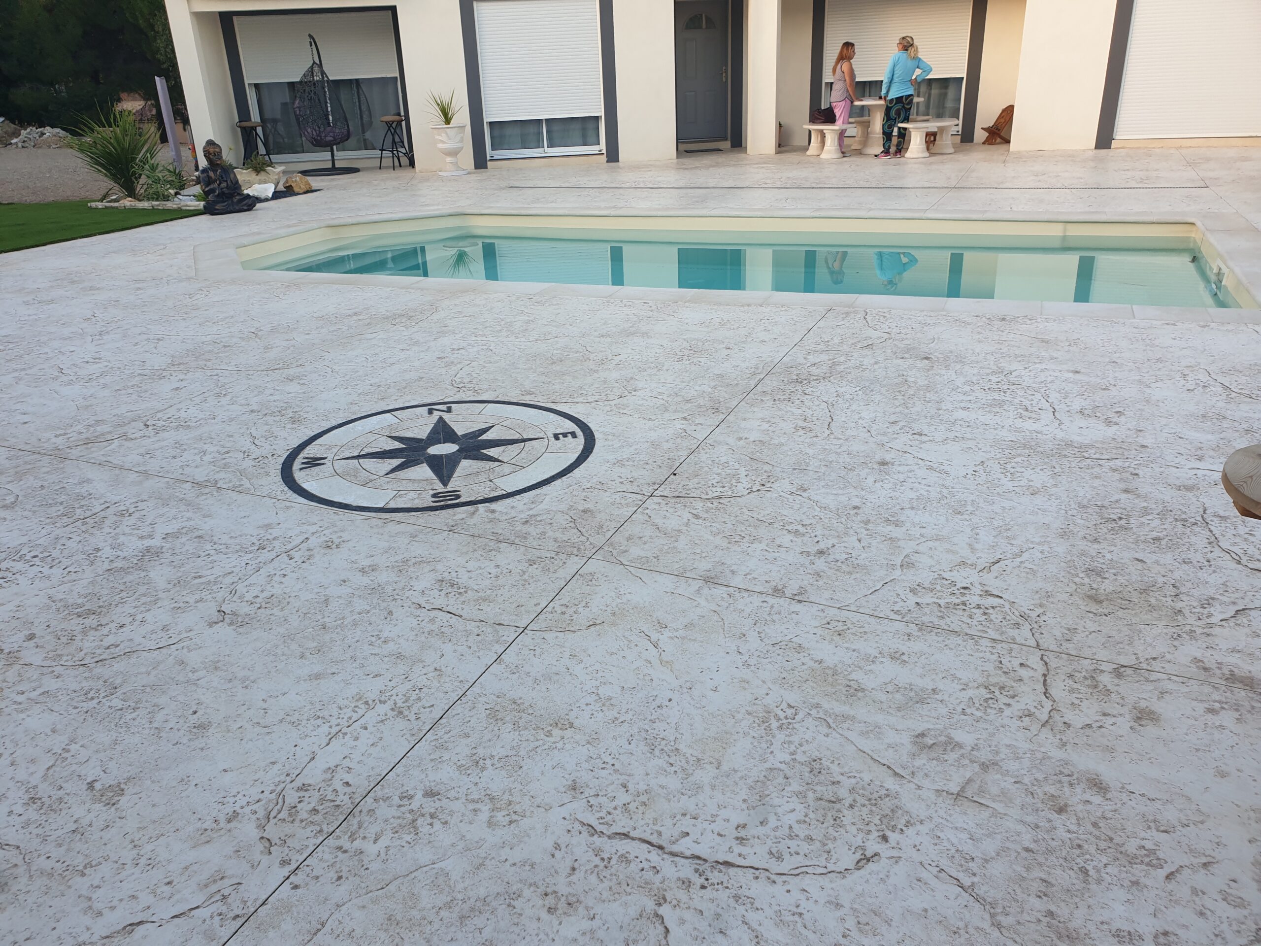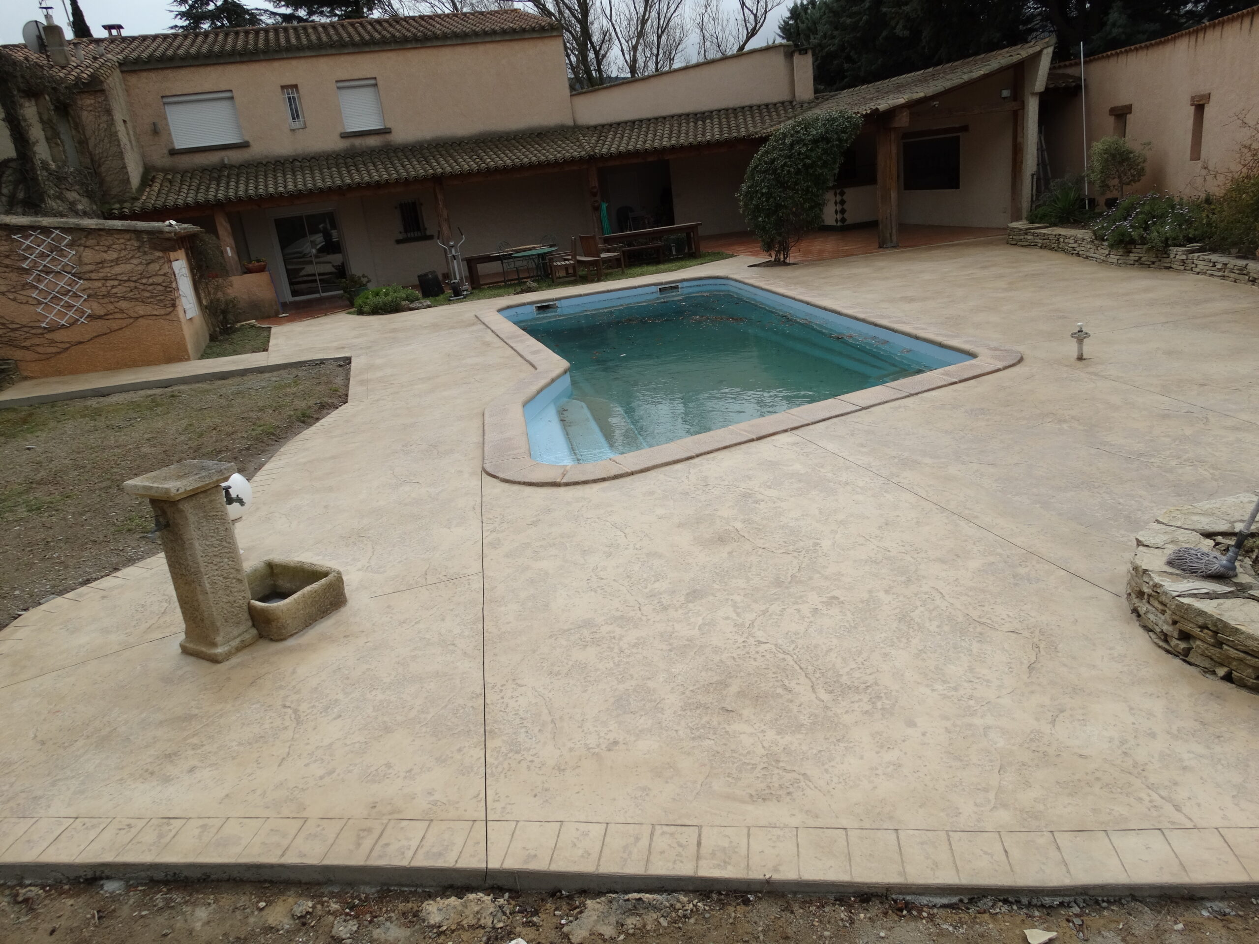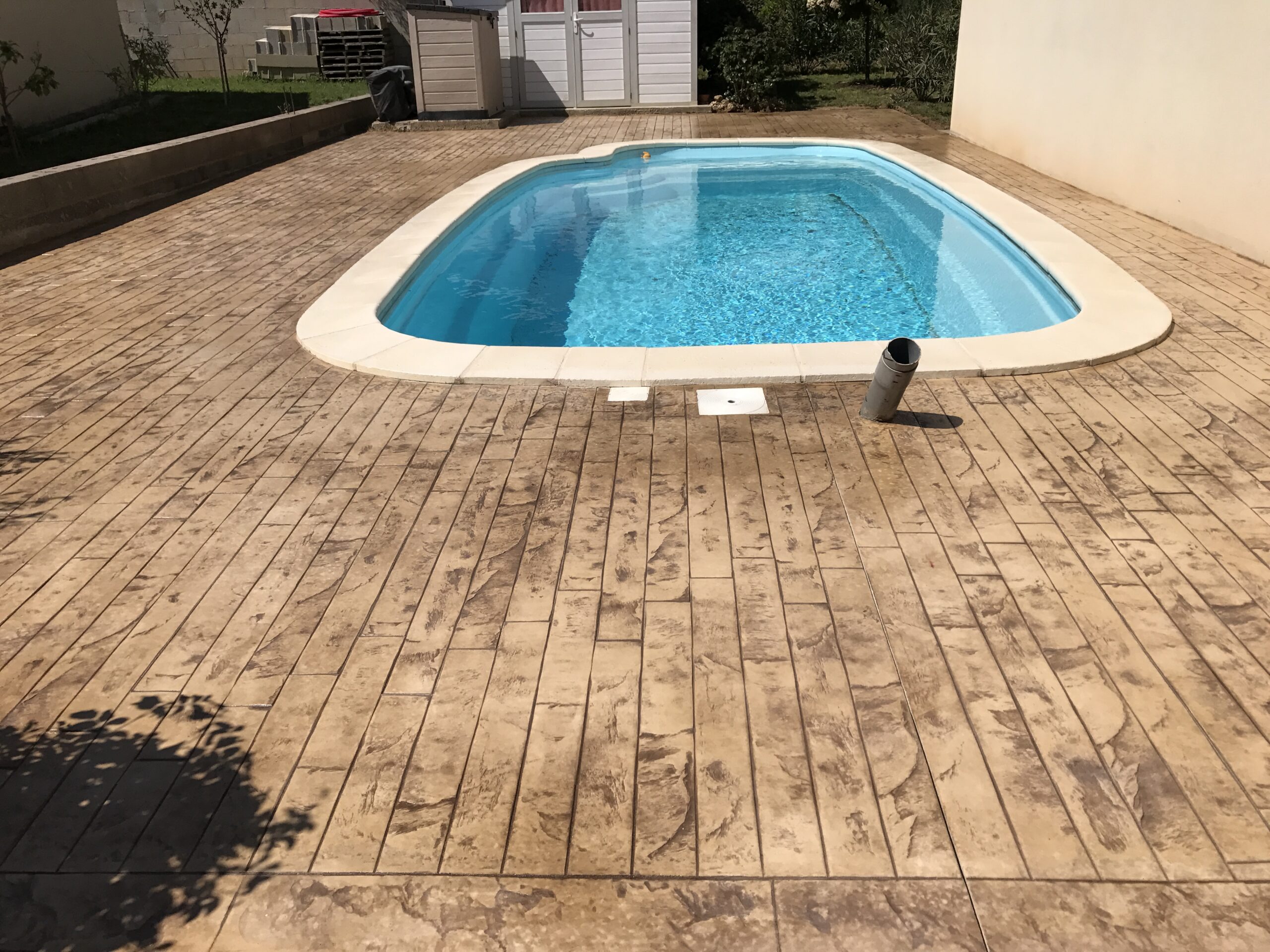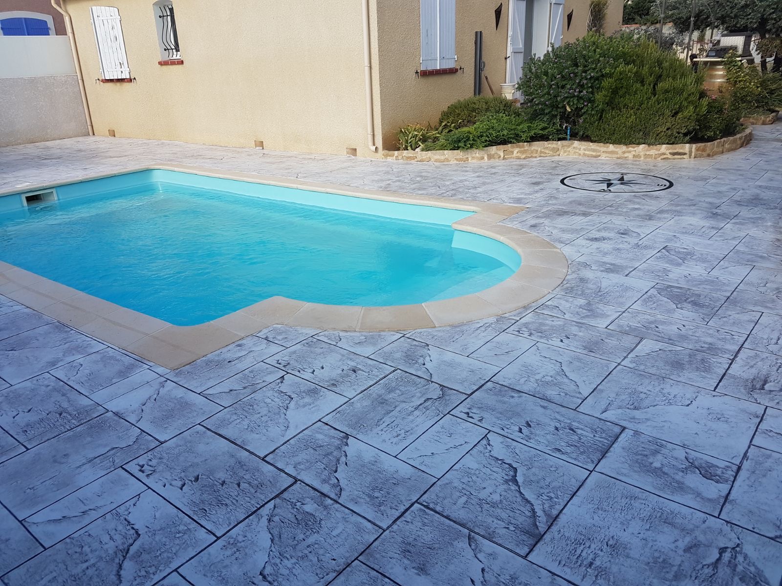 Grâce à son système d’imitation parfaite de travertin, carrelages, pierres et bois, etc. … le béton imprime ou marque aménage tous vos extérieurs de façon durable dans le temps.