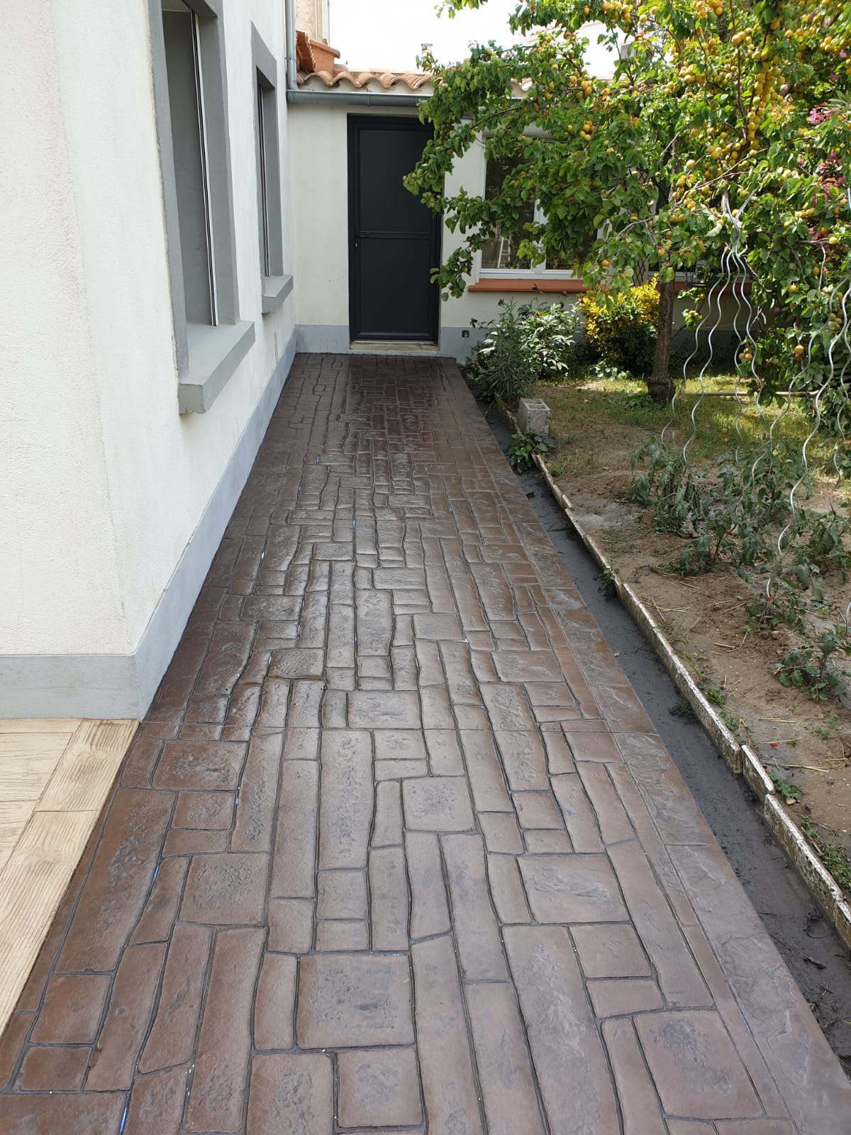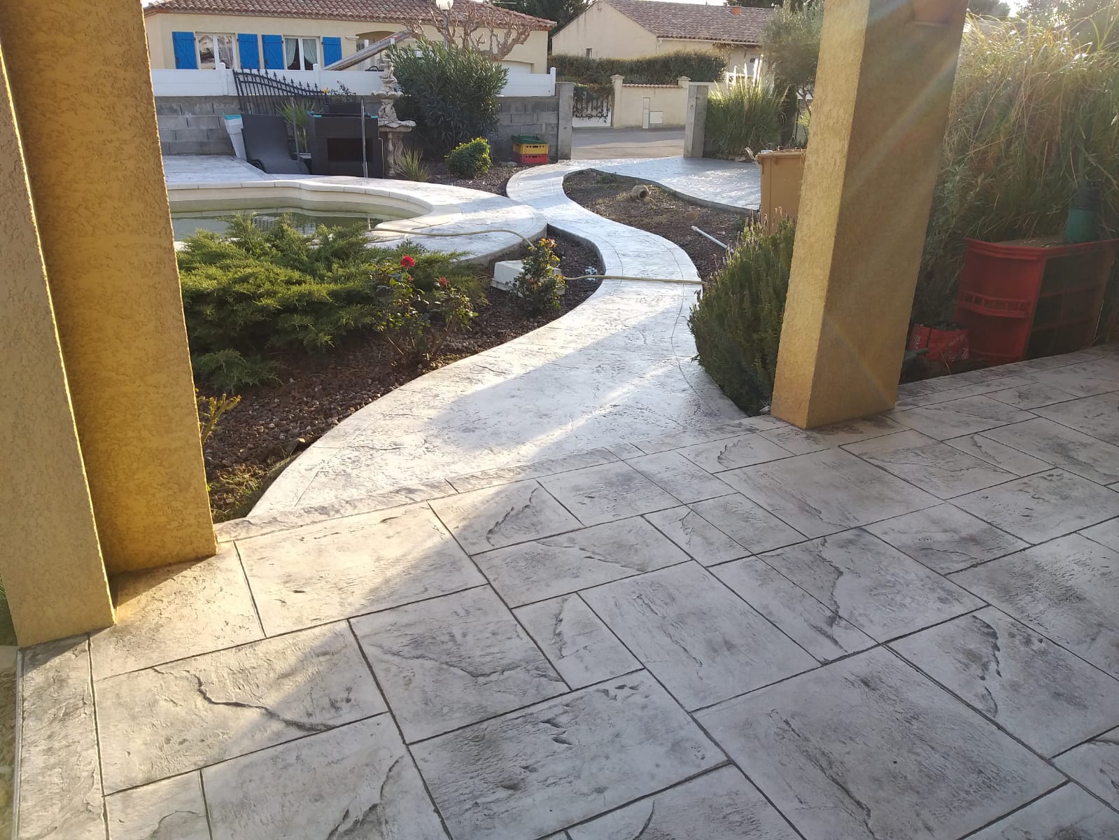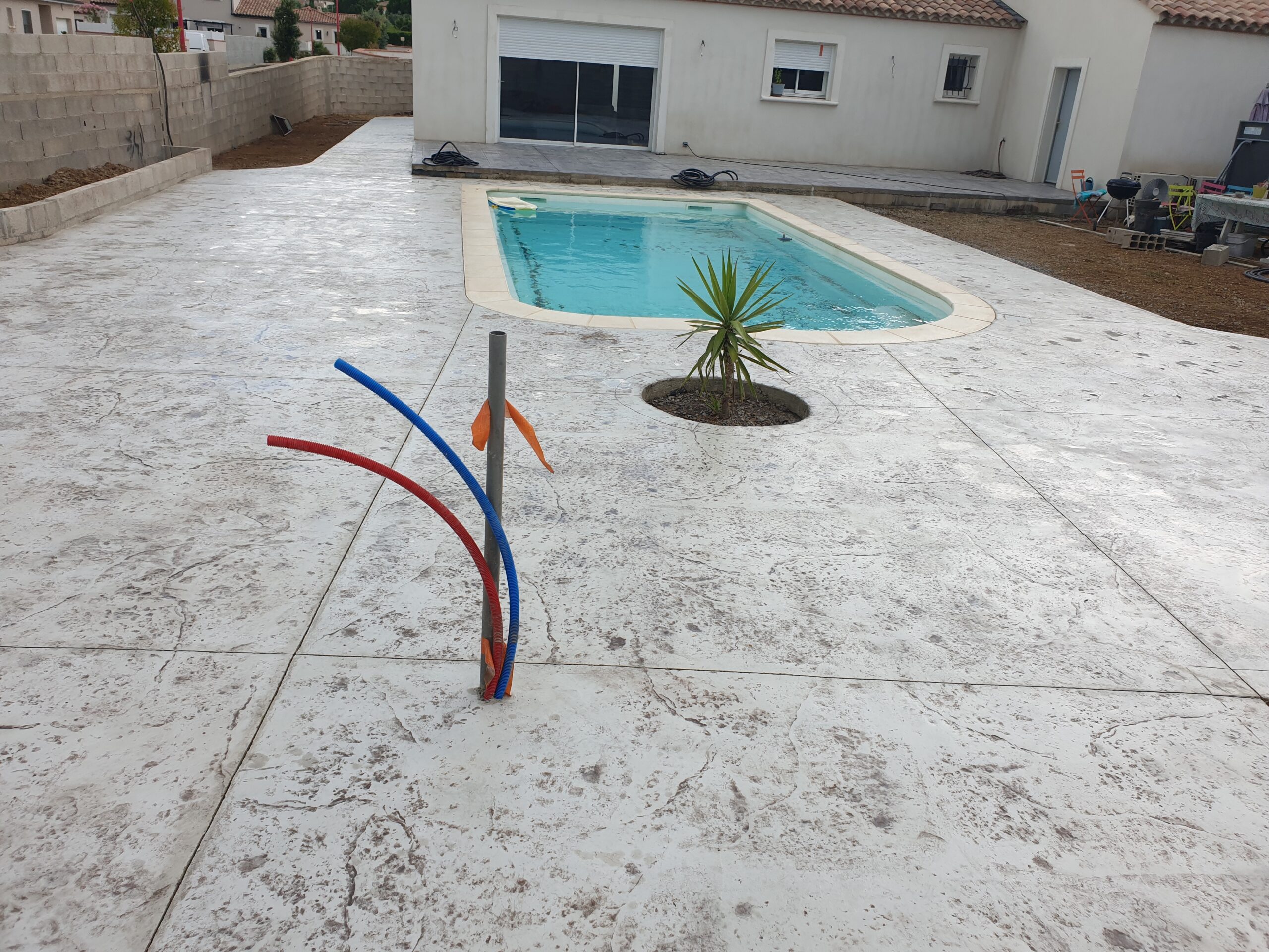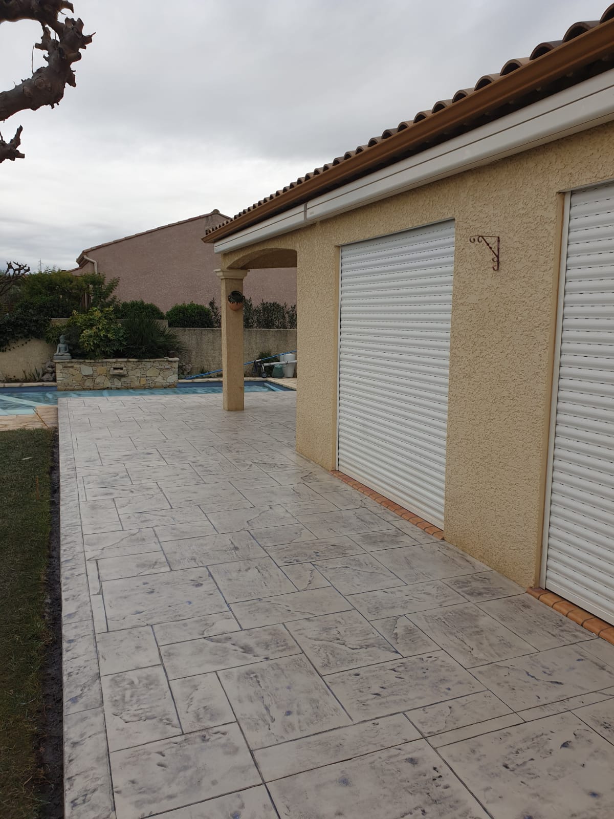 Grâce à son système d’imitation parfaite de travertin, carrelages, pierres et bois, etc. … le béton imprime ou marque aménage tous vos extérieurs de façon durable dans le temps.