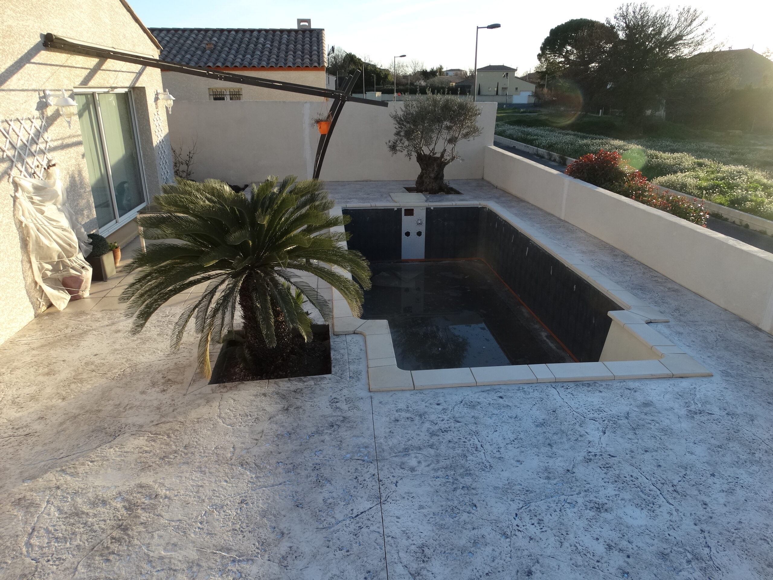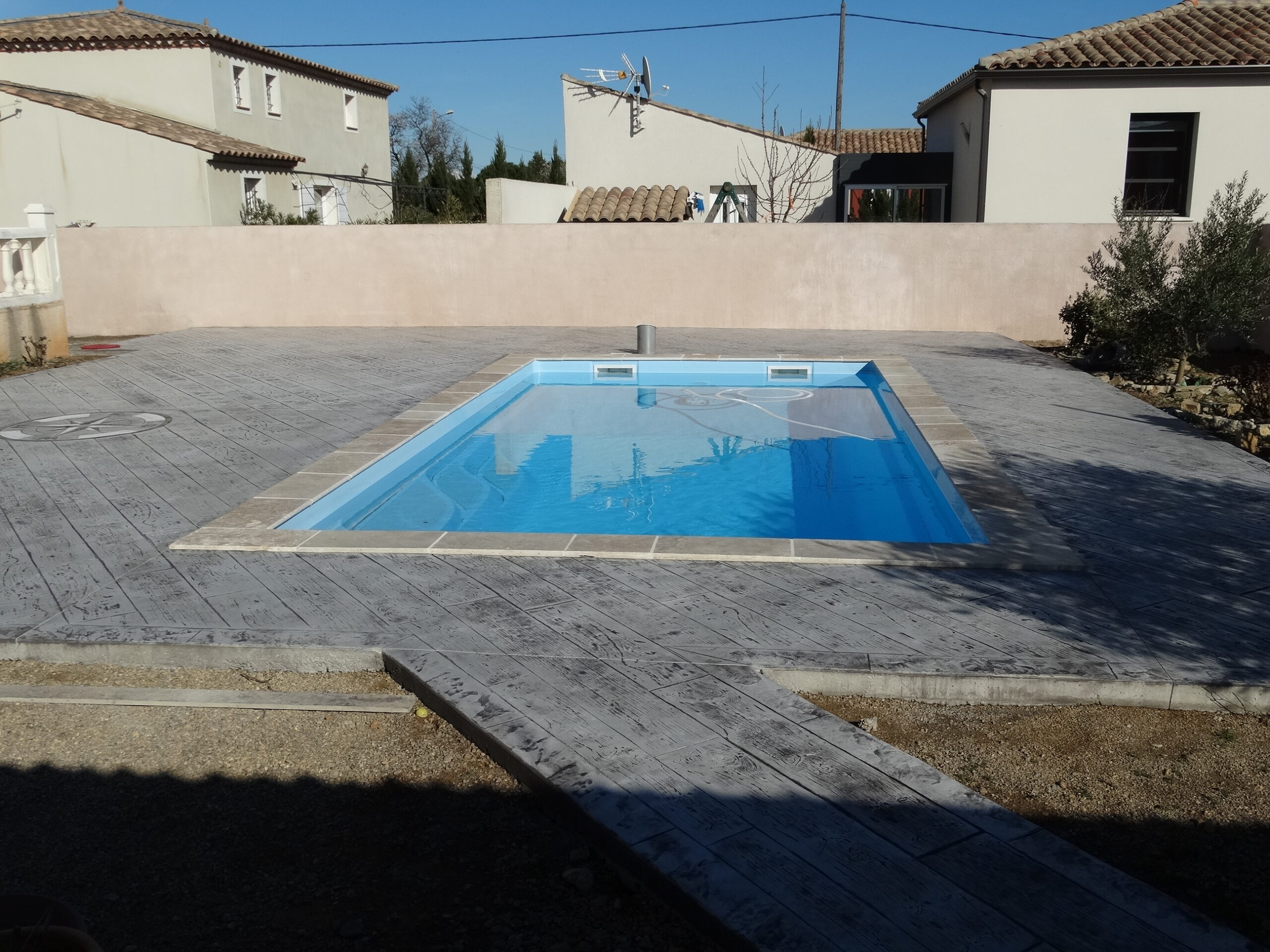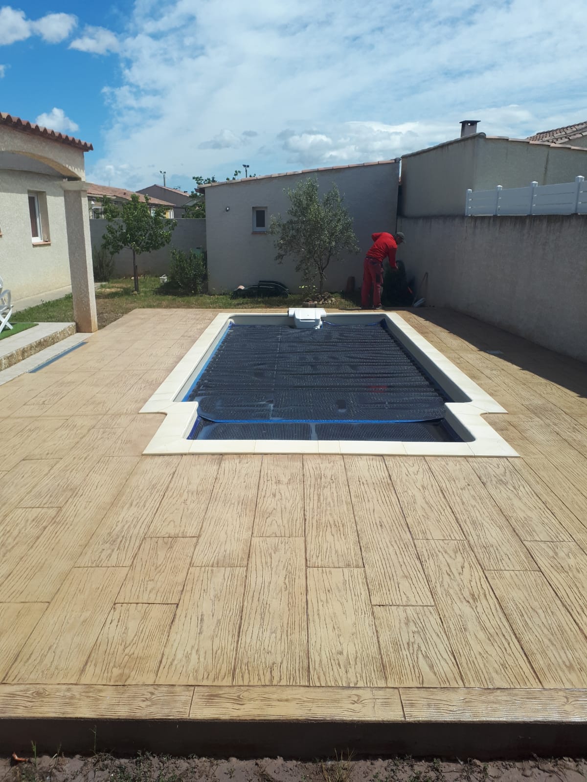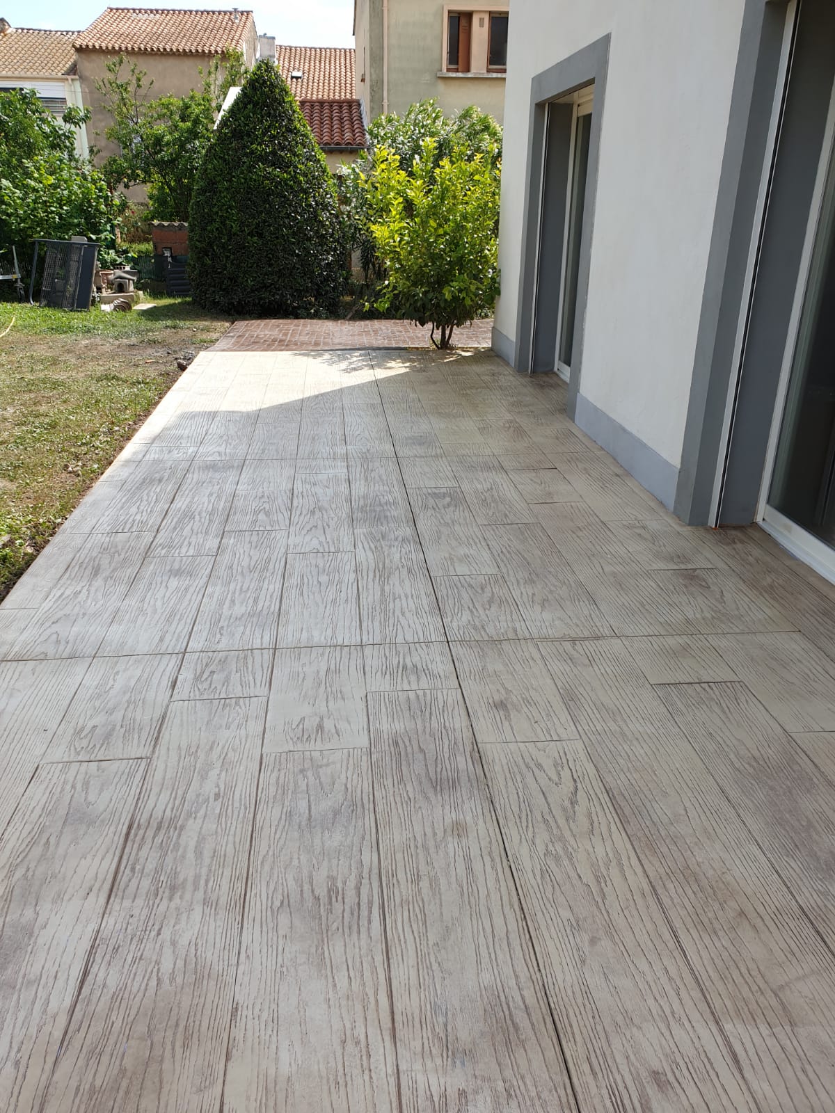 Grâce à son système d’imitation parfaite de travertin, carrelages, pierres et bois, etc. … le béton imprime ou marque aménage tous vos extérieurs de façon durable dans le temps.