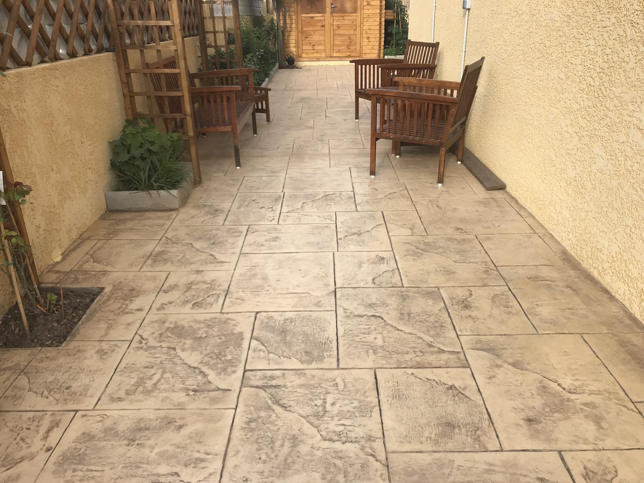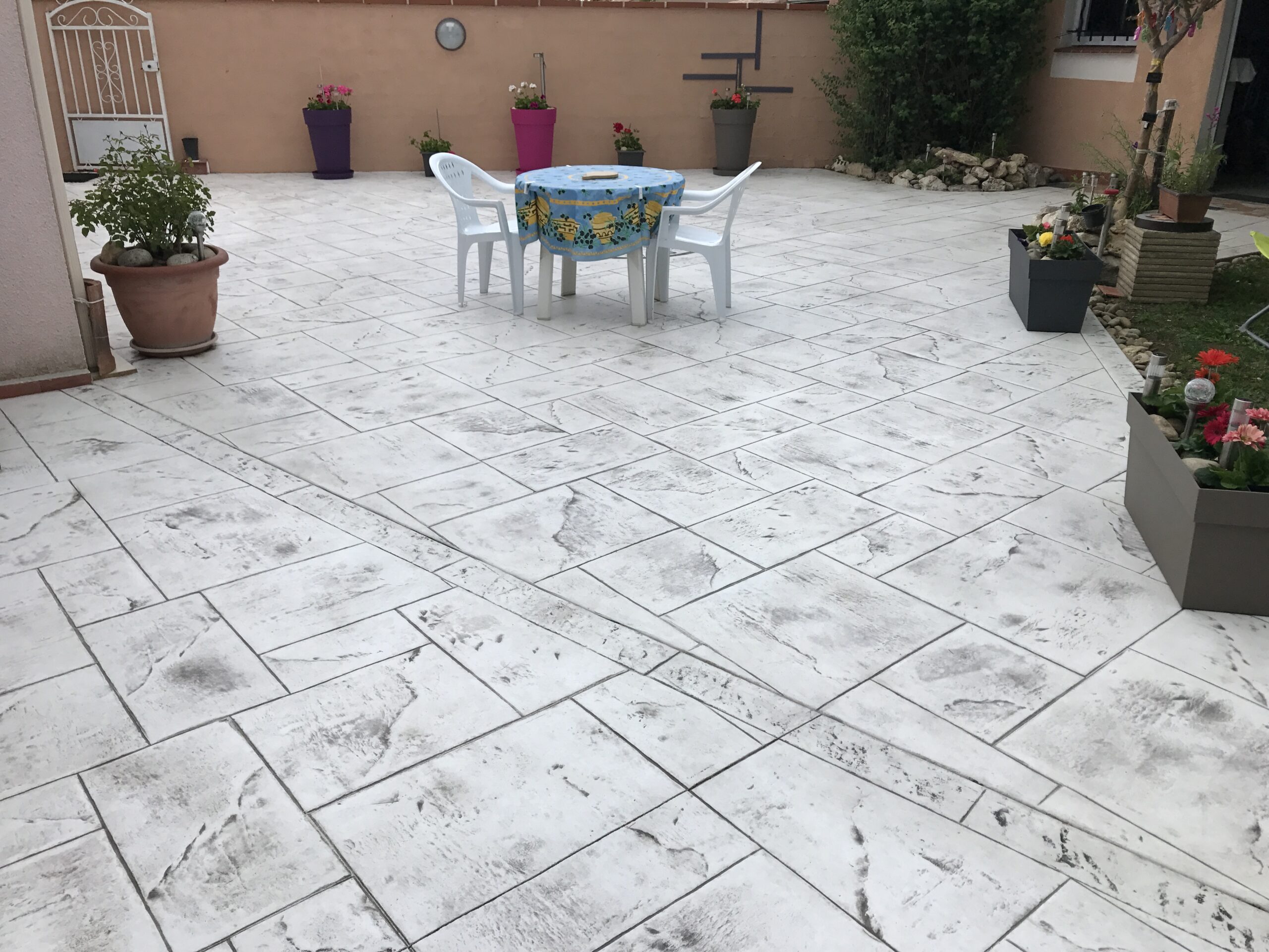 Le béton imprime est très résistante contre le gel et les UV, anti-tache, il supporte le grand passage tout en ayant l`esthétique visuel que vous souhaitez et une facilite d’entretien beaucoup plus performantes.
